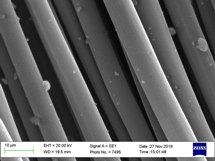 Після цього вуглецеву тканину на 15 хв. занурюють в срібну суспензію, накладаючи ультразвук, який інтенсифікує процеси сорбції, внаслідок чого наночастинки срібла адсорбуються поруватою структурою вуглецевої матриці та утворюють агломерати на поверхні волокон. І, оскільки утримання наночастинок на внутрішніх поверхнях мезопор здійснюється за рахунок капілярних сил, які в десятки разів перевищують всі інші сили, відповідальні за адгезію, то срібло напрочуд довго може зберігатися всередині АВВНМ без погіршення бактерицидних властивостей. Автори розробки - Сергєєв В.П., Логінова О.Б., Кістерська Л.Д., Бошицька Н.В., Кліпов В.Д. |