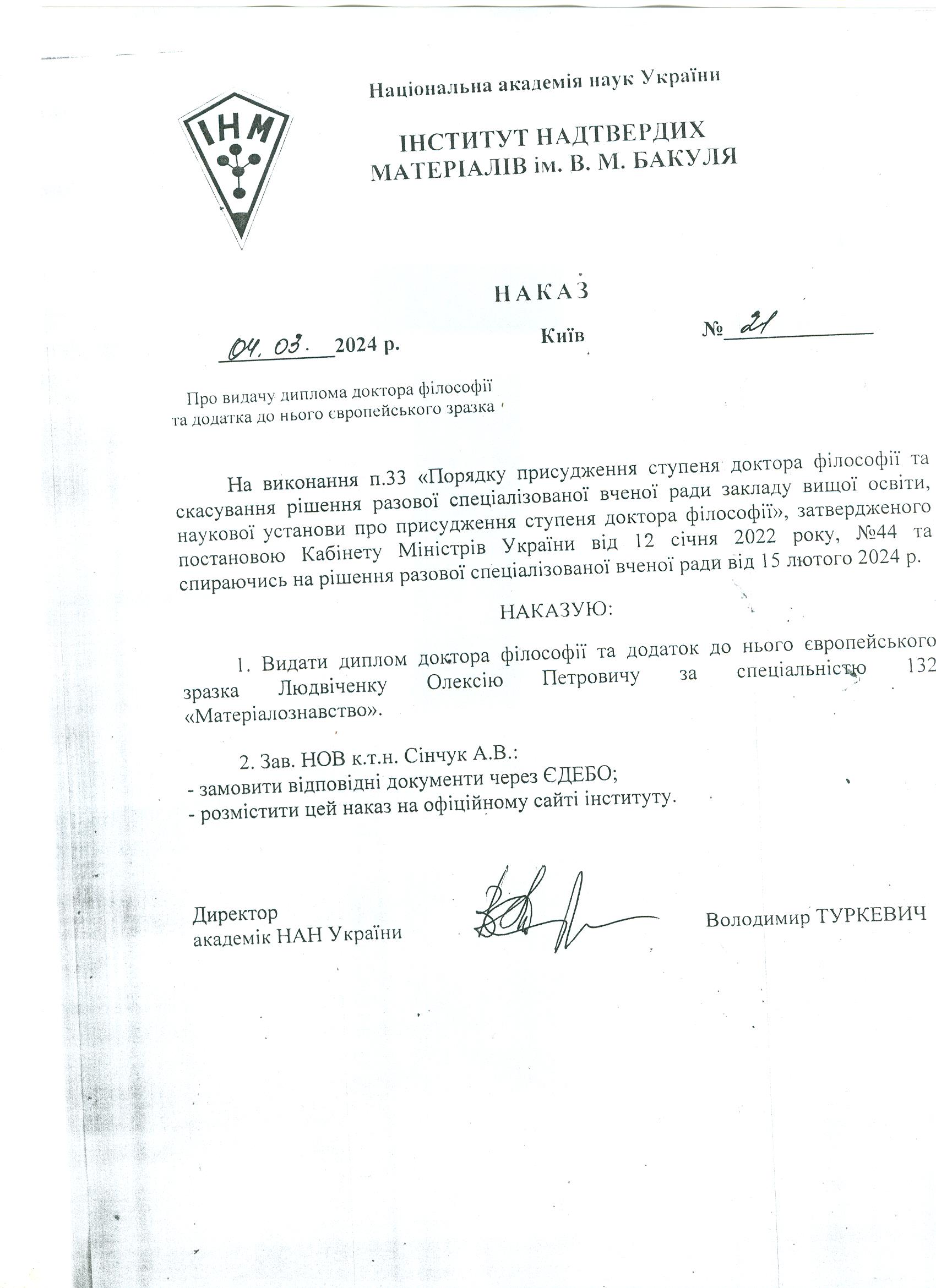 23 жовтня 2025 року об 11-00 в залі вченої ради відбувся захист дисертації на здобуття наукового ступеня доктора філософії Лямцевої Анни Олексіївни на тему «Підвищення зносостійкості алмазних полікристалів, сформованих за високого тиску та високої температури із алмазних порошків ростової системи Mg-Zn-C»